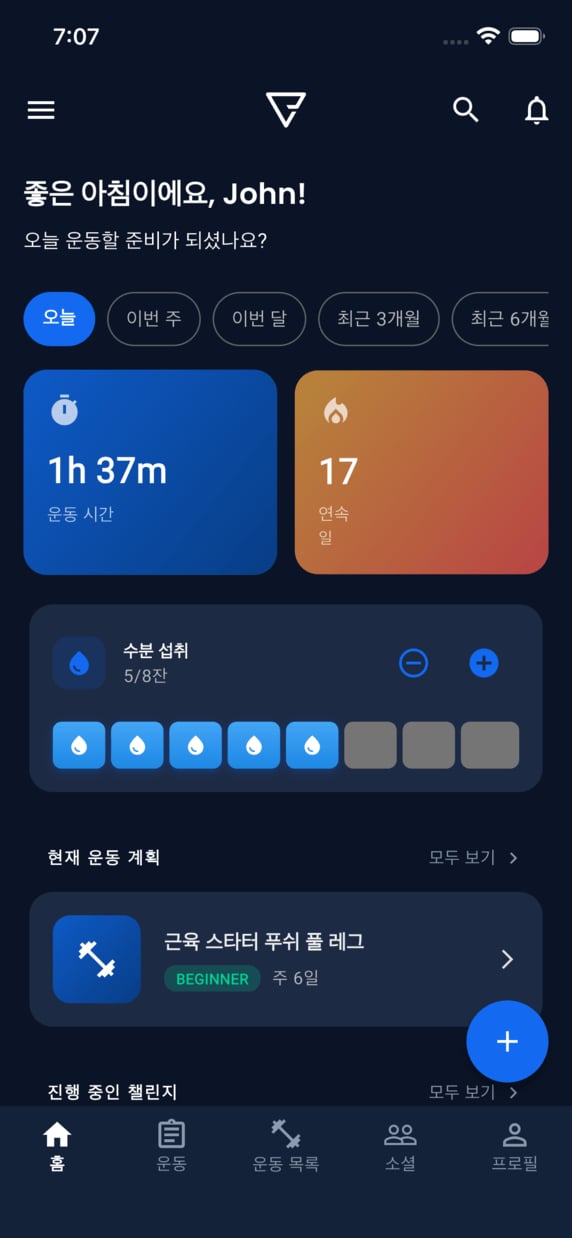 맞춤형 운동 계획, 챌린지, 커뮤니티 — 모든 것이 하나의 앱에.